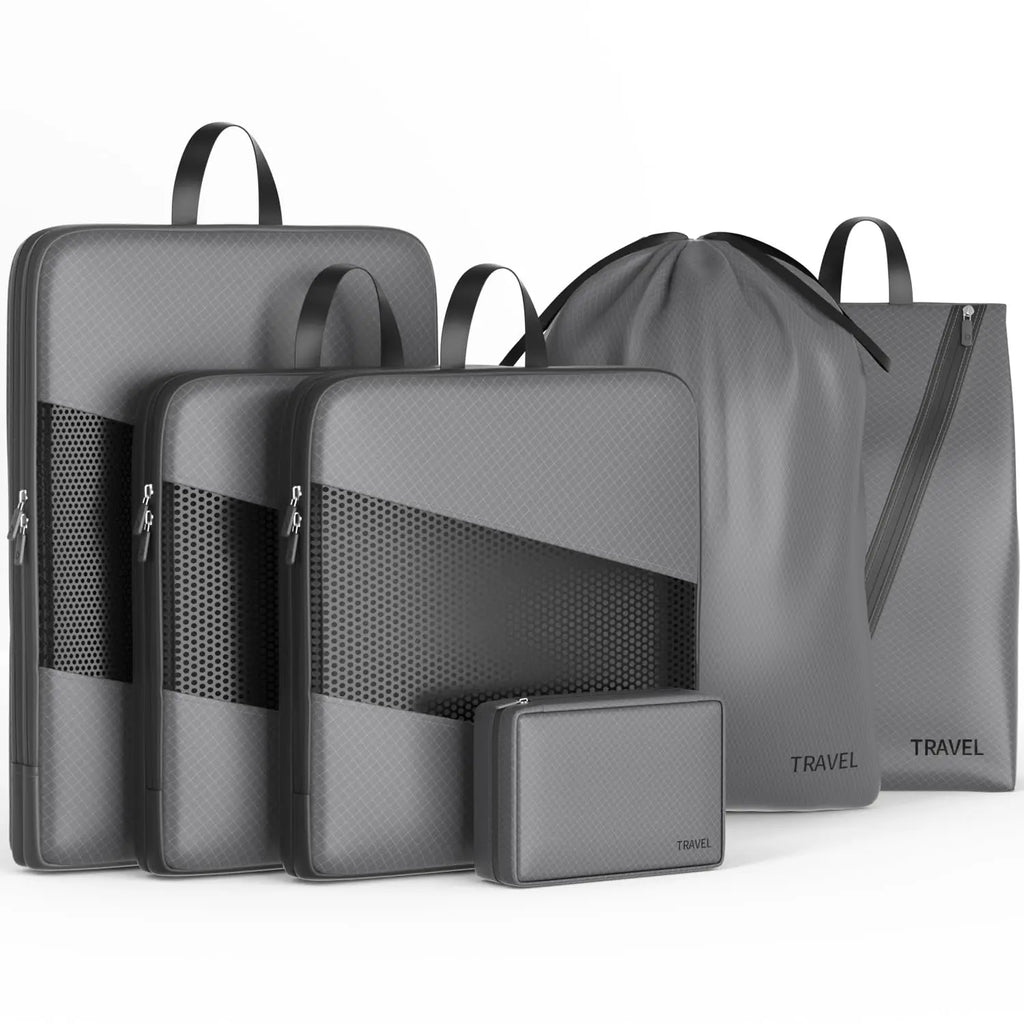 Com os Organizadores de Bagagem com 6 peças, sua experiência de viagem será muito mais tranquila. Este conjunto leve e compacto ajuda você a manter tudo no lugar, desde suas roupas até seus sapatos e acessórios, garantindo que seu mala esteja sempre organizado.