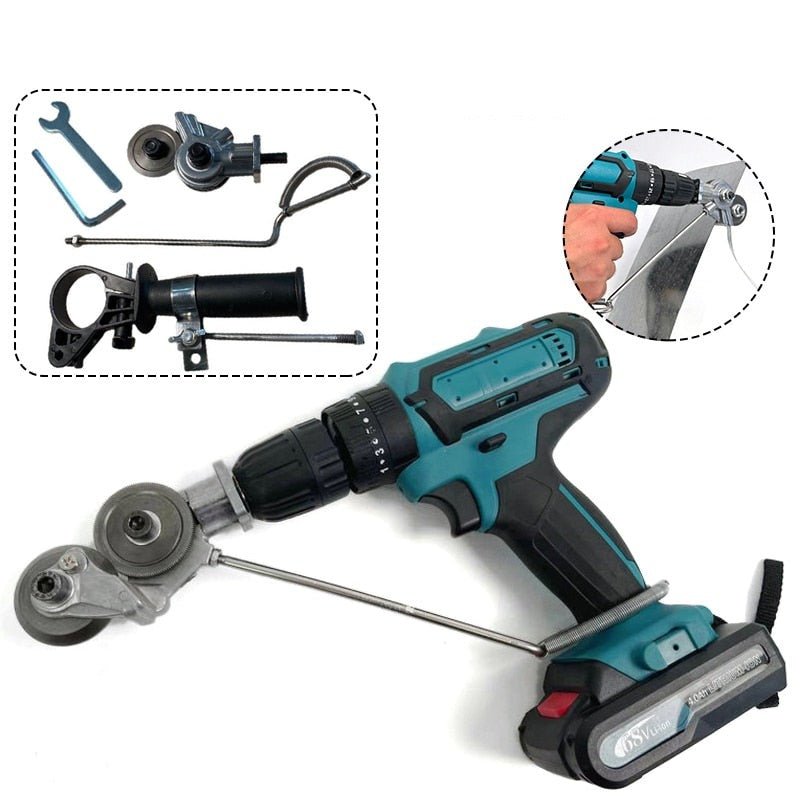 Transforme facilmente sua furadeira ou parafusadeira em um potente cortador de chapas de metal e similares!