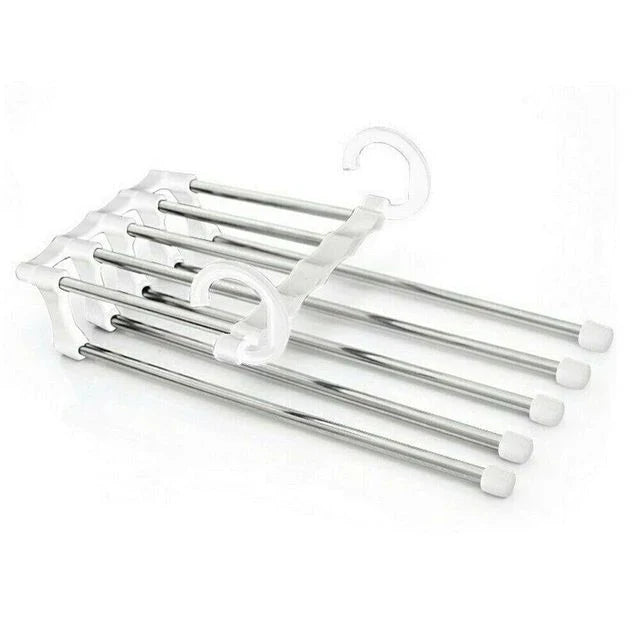 Chega de ficar com o guarda roupa todo bagunçado e com roupas amaçadas, o Cabide Magia Retrátil Multifuncional - 5 em 1 é a solução perfeita para o seu armário!