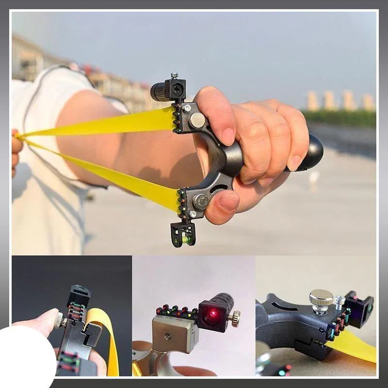 Alta Potência: Construído para oferecer força e desempenho, o estilingue Pro Mira a Laser garante disparos precisos e potentes em todas as situações.