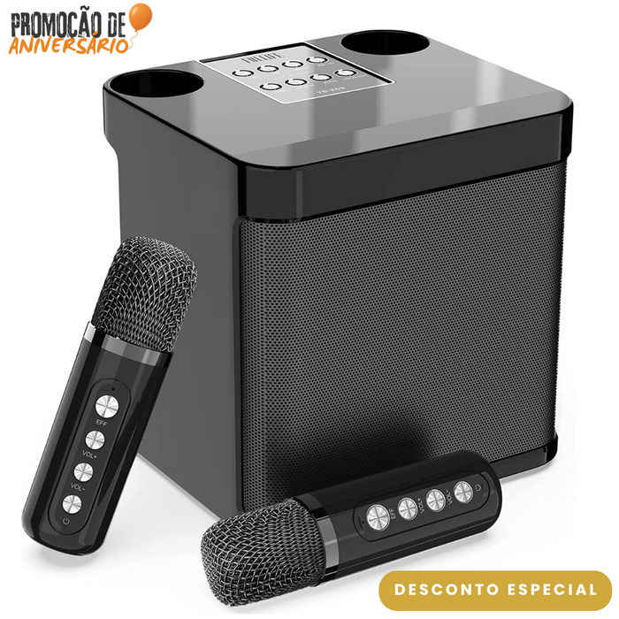 Estoque limitado e alta demanda — não perca a chance de ter um karaokê completo com dois microfones sem fio, som de qualidade e portabilidade total. Clique no botão abaixo e prepare-se para soltar a voz!
