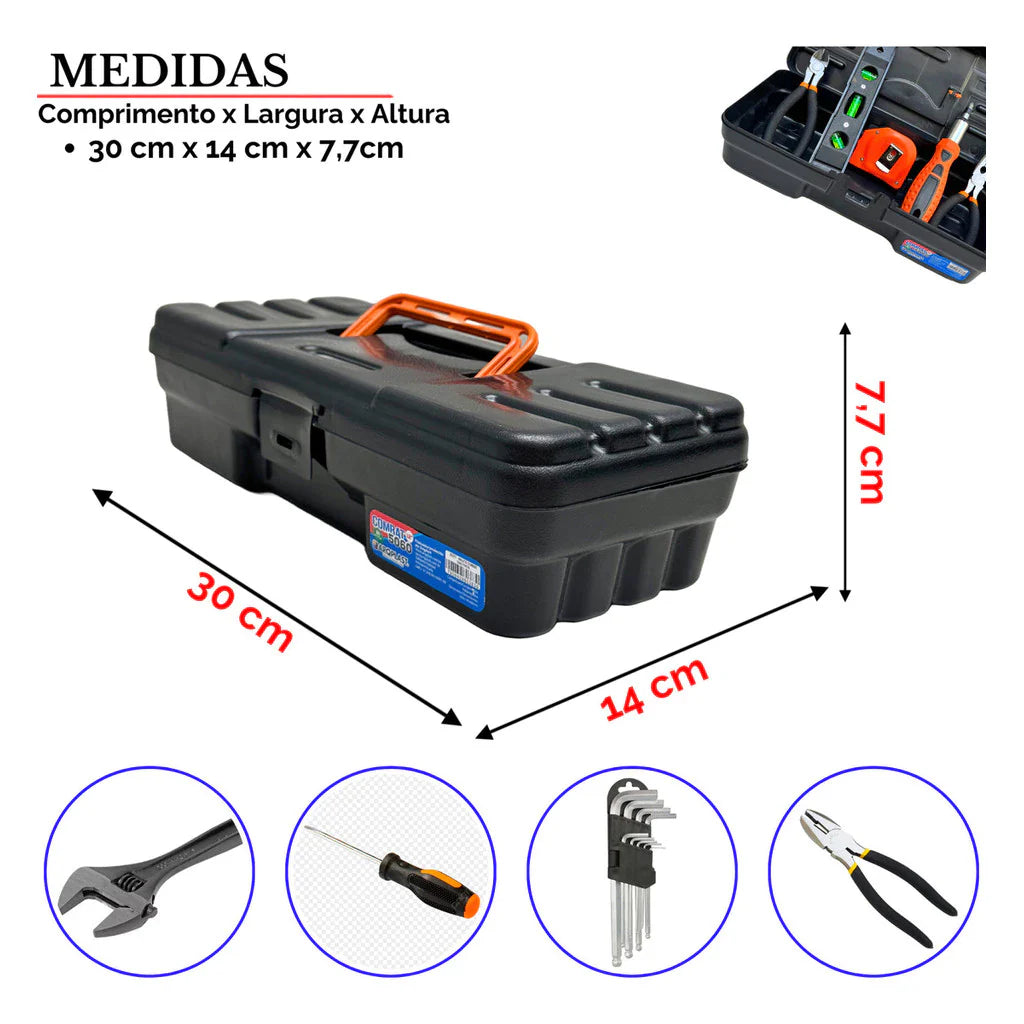 Se você se enrola toda vez que precisa achar uma ferramenta, esse kit é pra você. São 6 maletas brutas, pra organizar tuas chaves, alicates, parafusos e tudo que faz parte do teu trampo. Esquece gaveta bagunçada: aqui é cada coisa no seu quadrado, pronto pra uso.