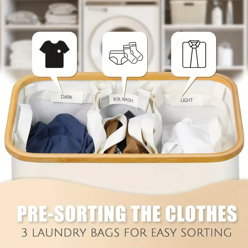 1x Cesto de Lavanderia 140L com 3 Divisórias + Sacos Removíveis