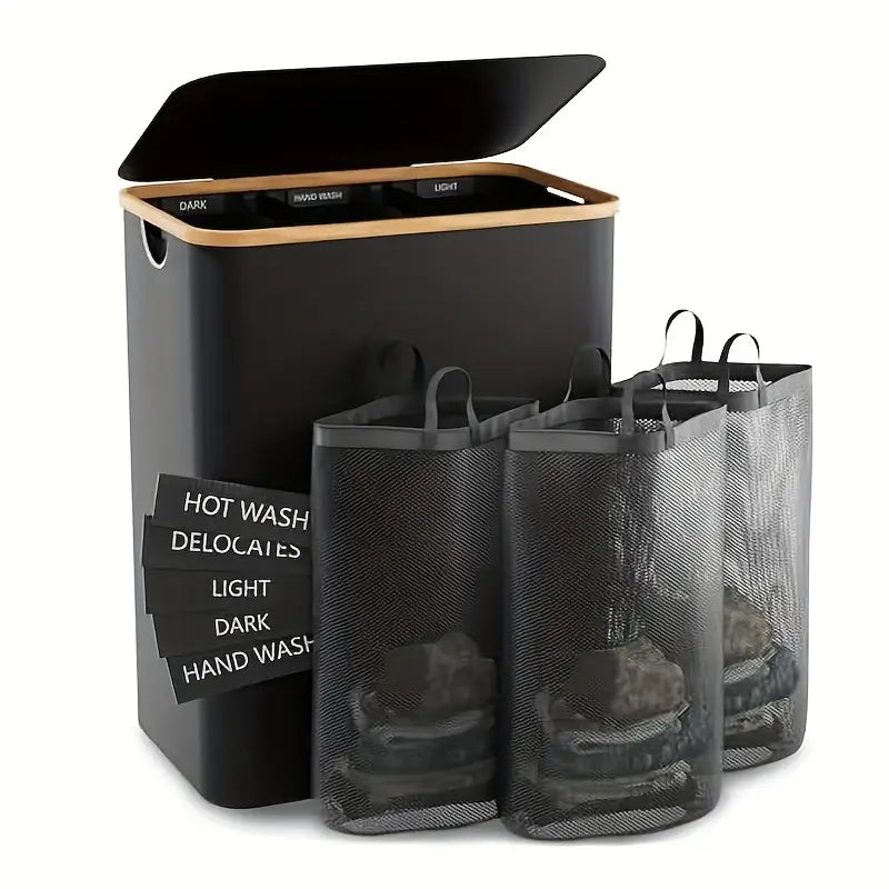 Diga adeus ao caos das roupas espalhadas. O cesto de lavanderia com três seções independentes e sacos internos removíveis permite separar roupas claras, escuras e coloridas com facilidade. Com capacidade de 140 litros, é perfeito para famílias e oferece um visual moderno nas cores preto, bege e cinza, que combina com qualquer decoração. Além de funcional, ele economiza tempo na hora de lavar e evita misturas indesejadas.