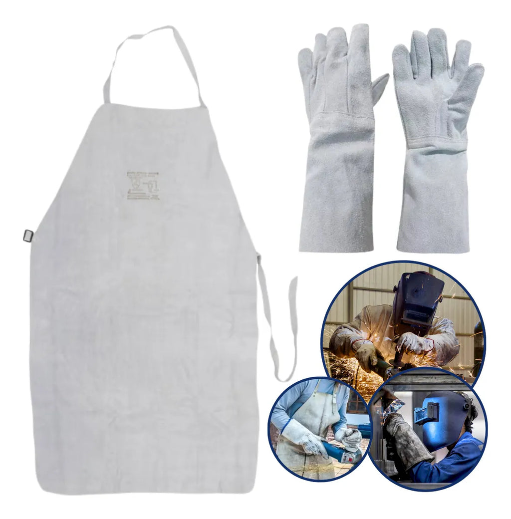 A luva e o avental de raspa garantem segurança em atividades com risco de cortes, abrasões, respingos de solda e calor. Alta resistência e conforto no uso diário.