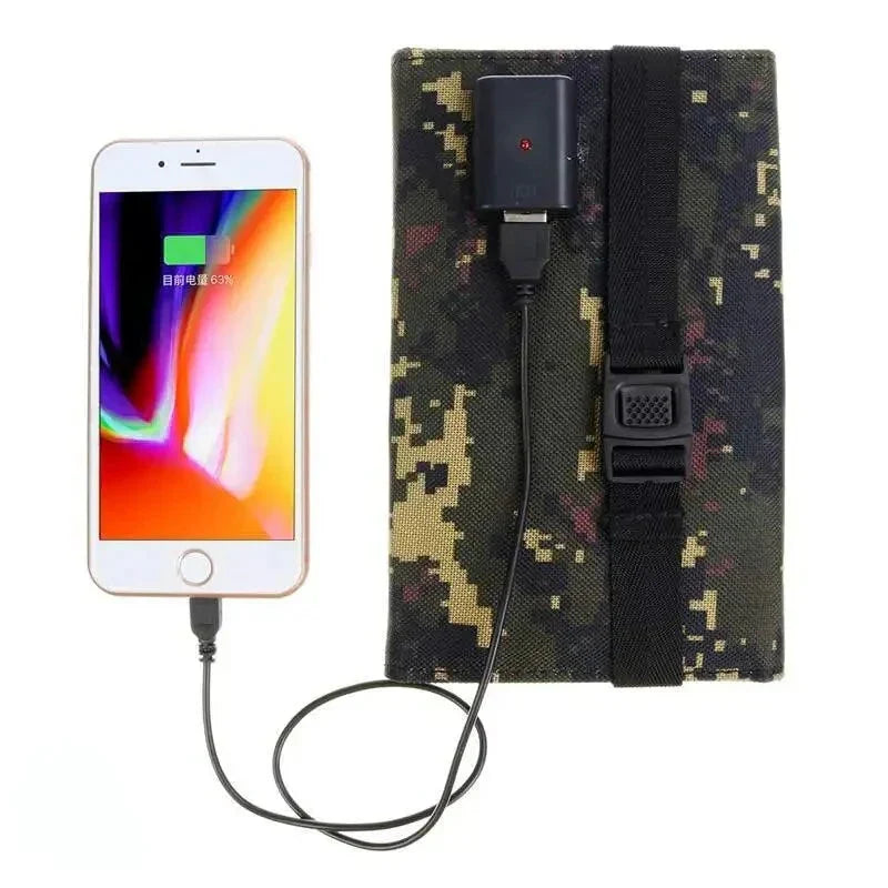 Portátil e Leve: Compacto e dobrável, o carregador é fácil de transportar e armazenar, perfeito para trilhas, acampamentos, pescarias ou viagens.