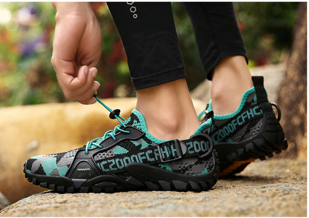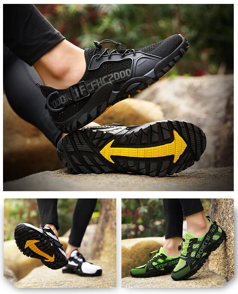 Design de Secagem Rápida e Impermeável: Mantenha seus pés secos com nossos materiais de malha impermeáveis. Os orifícios de drenagem permitem que a água seja expelida a cada passo, ideal para atravessar rios ou riachos.